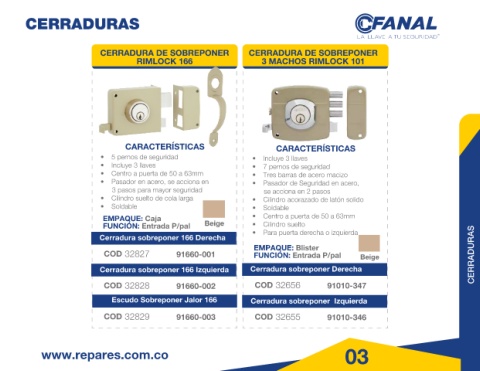 Cerradura sobreponer 166 Izquierda Cerradura sobreponer Derecha