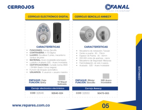 • CONTRASEÑA: 4-10 Digitos • Centro a puerta: 60 - 70mm