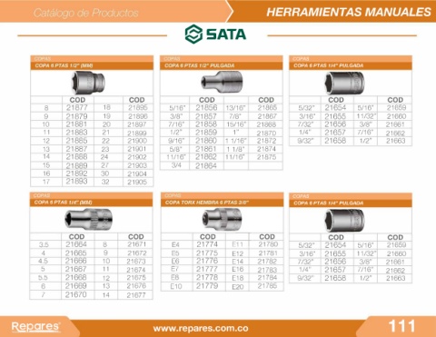 COPA 6 PTAS 1/4" (MM) COPA 6 PTAS 1/4" PULGADA
