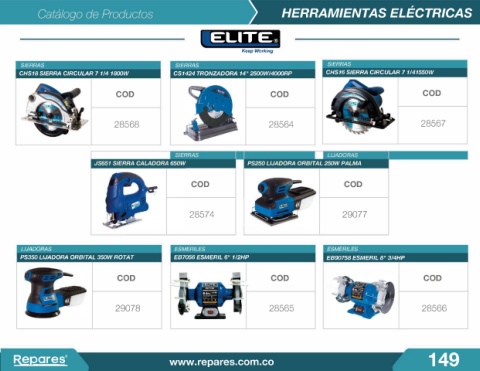 PS350 LIJADORA ORBITAL 350W ROTAT EB7056 ESMERIL 6" 1 /2HP EB90758 ESMERIL 8" 3/4HP