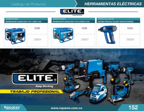 > HERRAMIENTAS ELÉCTRICAS ELITE® Keep Working GENERADORES GENERADORES PISTOLA DE CALOR GENERADOR GASOLINA/1 PH 1.3KW/110V GENERADOR GASOLINA/1 PH 2.05KW/110V HG1600 PISTOLA CALOR 1600W/570GRAD COD COD COD 28904 28907 28569