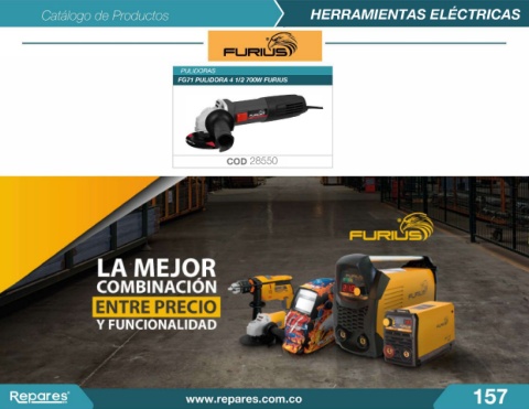 > HERRAMIENTAS ELÉCTRICAS PULIDORAS FG71 PULIDORA 41/2 700W FURIUS COD 28550