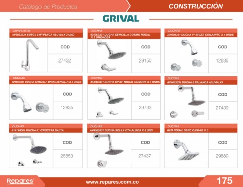 AV 5033331 SUBCJ LVP PLNCA ALUVIA X 3 UND 434353331 DUCHA SENCILLA COSMO NOGAL 324503331 DUCHA 8" BRIZA CONJUNTO X 4 UNDS.