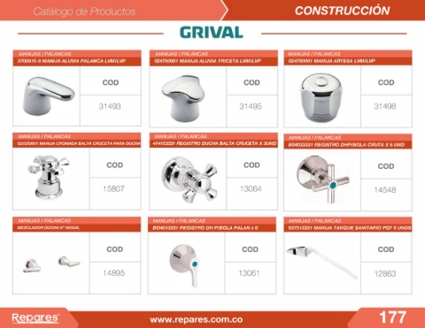 MEZCLADOR DUCHA 8" NOGAL BO4013331 REGISTRO DH P/BOLA PALAN x 6 937513331 MANIJA TANQUE SANITARIO PQT 6 UNDS