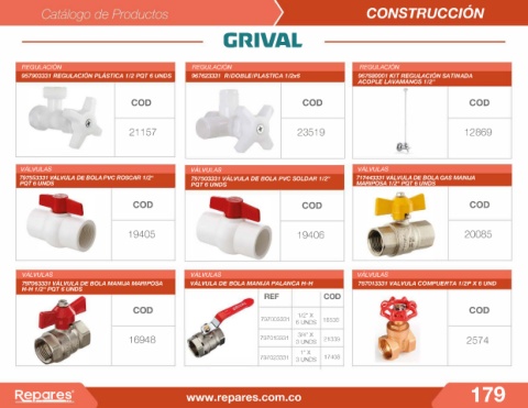 797553331 VÁLVULA DE BOLA PVC ROSCAR 1/2" 797503331 VÁLVULA DE BOLA PVC SOLDAR 1/2" 717443331 VÁLVULA DE BOLA GAS MANIJA