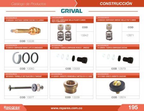 018053331 VASTAGO CIERRE DUCHA X 6 LARGO 018713331 EMPAQUE SELLE PLAST 2 UNDS 018693331 EMPAQUE UNIDAD SELLE PQT 3 UNDS
