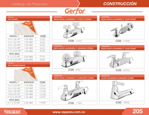 N 8 2,44 MT 1.00 MM 5215 MEZCLADOR LAVAMANOS 4" AQUAR/US CROMO MEZCLADOR LAVAMANOS 4" SL/M CROMO