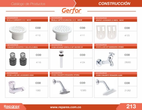 101599 LLAVE IND LAVAMANOS AQUA 101838 CONJUNTO REGADERA VITORIA 101836 CONJUNTO REGADERA ALMA