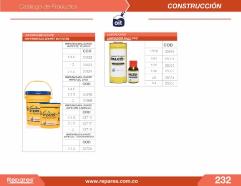 IMPERMEABILIZANTE IMPERZIL LIMPIADOR PALC PVC