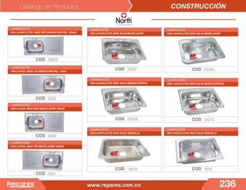 1654 LAVAPLATOS INOX DER MONOCONTROL 100x50 1323 LAVAPLATOS INOX 62x48 MEZCLADOR 1658 LAVAPLATOS INOX 50x40 MEZCLADOR