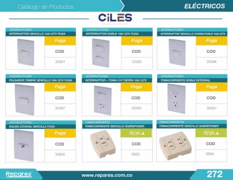 ELÉCTRICOS > CiLCS PRESENTE EN EL FUTURO COD COD COD l 30581 30582 30584 • 1 1 -· 1 1 COD COD COD • 30587 30590 30597 TOMACORF.i/ENTES TOMACORRIENTES . ---- COD COD COD 30600 6663 6664 F@J2are� ® www.repares.com.co 272