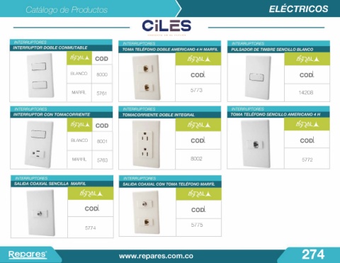 > CiLCS ELÉCTRICOS PRESENTE EN EL FUTURO o COD BLANCO 8000 COD t MARFÍL 5761 5773 14208 • CJ 1 1 - BLANCO 8001 COD ti - COD 1 1 MARFÍL 5763 8002 5772 � COD COD � .. 5774 5775 F@J2are� ® www.repares.com.co 27 4