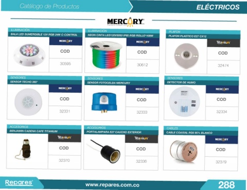 ELÉCTRICOS > MERCORY ® Siempre compelilivo1 I \ / COD COD COD //¡¡ \\\\ 30595 30612 32474 COD COD COD • 32331 32333 1111111 - 32334 i;;01,t(#f G' ,9 COD COD �� ... O'\ -t COD ,· 32370 32336 32379 F@J2are� ® www.repares.com.co 288