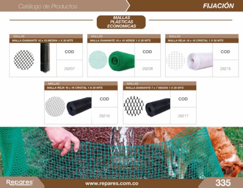 FIJACIÓN MALLAS PLÁSTICAS ECONOMICAS • ' , .. ' COD COD COD 29207 29208 -�- 29215 MALLAS MALLA REJA 16 x 16 CRISTAL 1 X 30 MTS COD COD 29216 29217