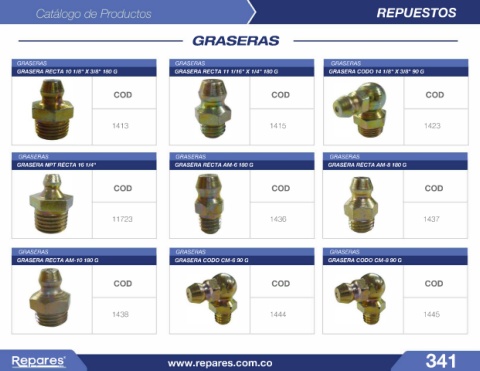 GRASERA RECTA AM-10 180 G GRASERA CODO CM-6 90 G GRASERA CODO CM-8 90 G