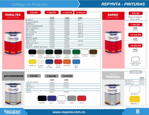 COLOR ---- 1/4 GALÓN 1/8GALÓN REPYNTA - PINTURAS