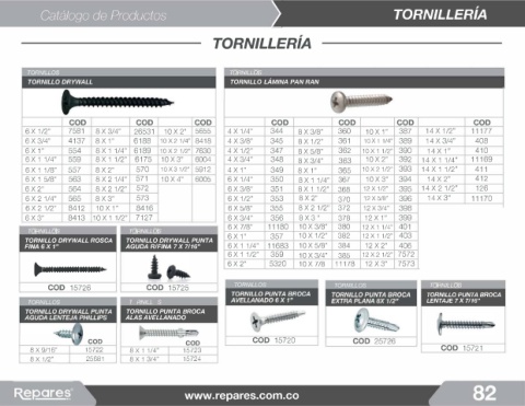 TORNILLO DRYWALL ROSCA TORNILLO DRYWALL PUNTA 6 X 1" 357 10 X 1/2" 382 12 X 1 1/2" 403