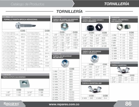8 X 3/4 FLENGE X200 UNO. 1 O X 3 FLENGE X100 UNO. - . TUERCA DE SEGURIDAD 10MM P 1.50 857