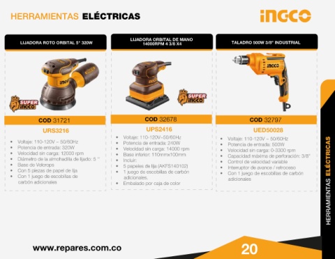 LIJADORA ROTO ORBITAL 5" 320W 14000RPM 4 3/8 X4 TALADRO 500W 3/8" INDUSTRIAL