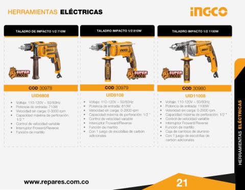 TALADRO DE IMPACTO 1/2 710W TALADRO IMPACTO 1/2 810W TALADRO IMPACTO 1/2 1100W