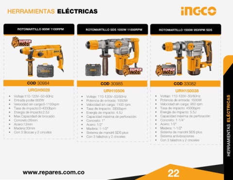 ROTOMARTILLO 800W 1100RPM ROTOMARTILLO SDS 1050W 11000RPM ROTOMARTILLO 1500W 950RPM SDS