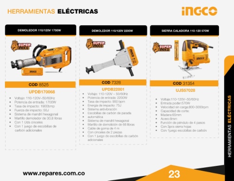 DEMOLEDOR 110/120V 1700W DEMOLEDOR 110/120V 2200W SIERRA CALADORA 110-120 570W