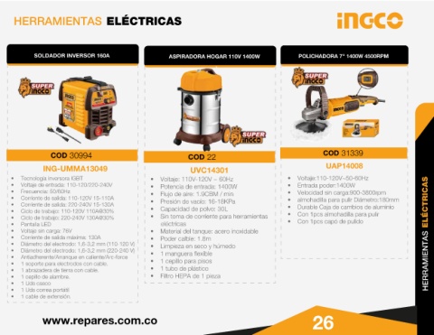 SOLDADOR INVERSOR 160A ASPIRADORA HOGAR 110V 1400W POLICHADORA 7" 1400W 4500RPM