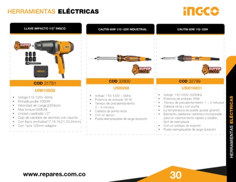 LLAVE IMPACTO 1/2” INGCO CAUTIN 60W 110-120V INDUSTRIAL CAUTIN 60W 110-120V