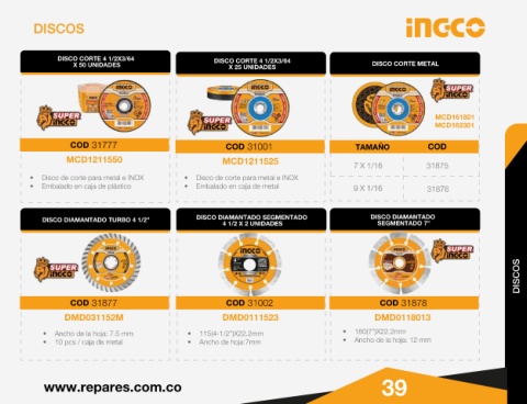 • Disco de corte para metal e INOX • Disco de corte para metal e INOX