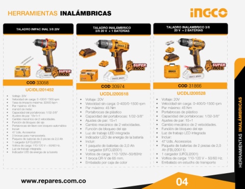 TALADRO IMPAC INAL 3/8 20V TALADRO INALÁMBRICO TALADRO INALAMBRICO 3/8