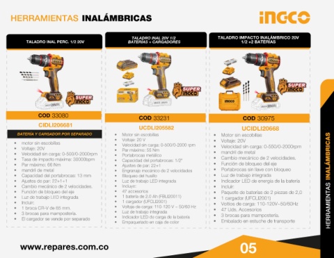 TALADRO INAL 20V 1/2 TALADRO IMPACTO INALÁMBRICO 20V