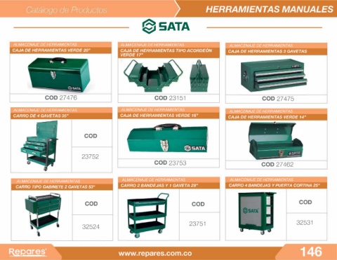 CARRO DE 4 GAVETAS 35" CAJA DE HERRAMIENTAS VERDE 16" CAJA DE HERRAMIENTAS VERDE 14"