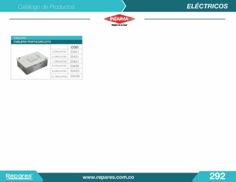 �,�!= > ELÉCTRICOS Siempre en su Casa! COD 2CIRCUITOS 33451 3CIRCUITOS 33451 4 CIRCUITOS 33451 6CIRCUITOS 33438 8CIRCUITOS 33453 12 CIRCUITOS 33439 �J2are� ® www.repares.com.co 292