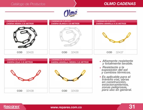 CADENAS DE PLÁSTICO CADENAS DE PLÁSTICO . Altamente resistente