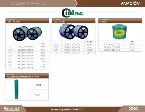 1/4" ROLLO 500 MTS 3649 3/8" ROLLO 100 MTS 28472 12000 X 150 MTS 4765