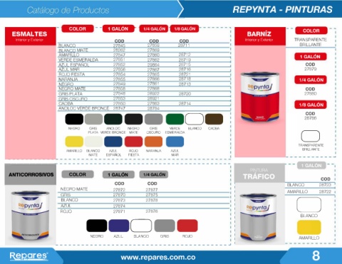 COLOR ---- 1/4 GALÓN 1/8GALÓN REPYNTA - PINTURAS